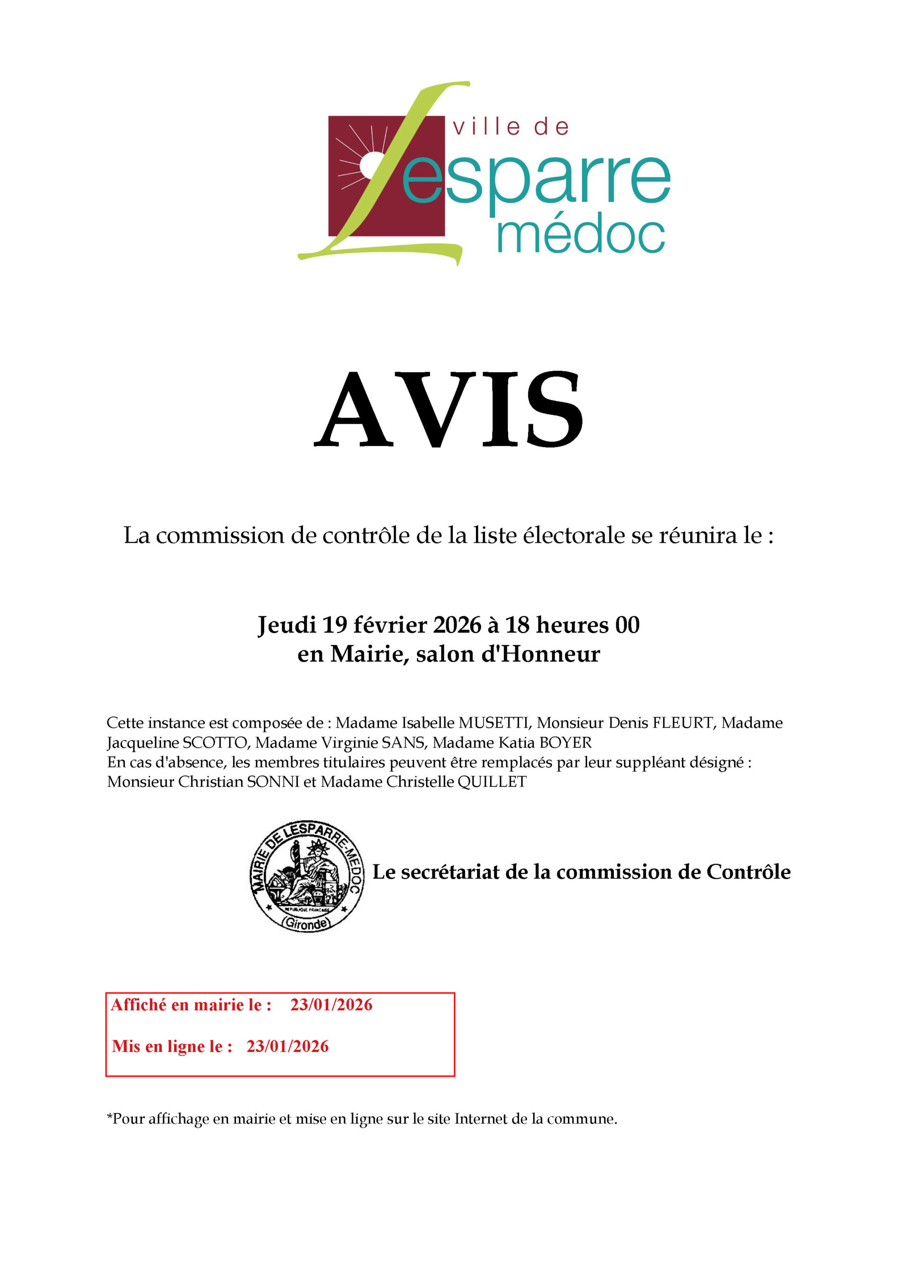 Jan232026ElectionsFil d'actualitésCommission de contrôle des listes électoralesPartager cet article Share on FacebookShare on Facebook Share on XShare on X Share on WhatsAppShare on WhatsAppPour aller plus loinCAMPAGNE FDVA2 : Fonds pour le Développement de la Vie Associative20 janvier, 2026Liste électorale : les radiations ont été opérées, pensez à vérifier votre inscription20 janvier, 2026