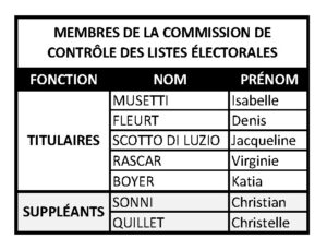 Cette instance est composée d’élus de la liste majoritaire et des listes d’opposition. Les membres de la Commission sont nommés par arrêté du Préfet, pour une durée de 3 ans et après chaque renouvellement intégral du Conseil Municipal. Ils jouissent de pouvoirs égaux et des mêmes prérogatives ; la Commission de Contrôle n’est donc pas présidée.